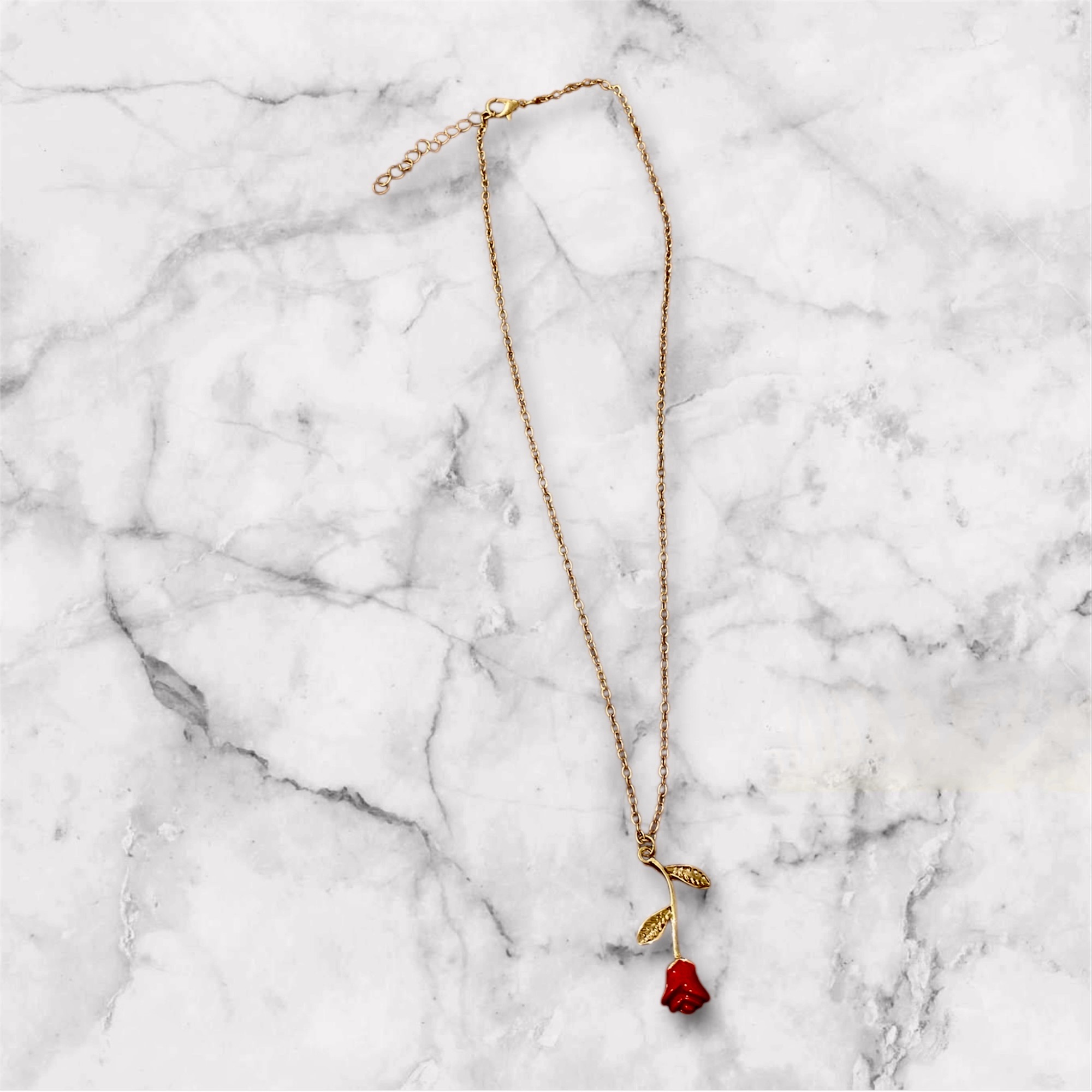 Colar delicado com corrente dourada fina e pingente de rosa vermelha estilizada. Uma peça romântica e moderna, perfeita para usar no dia a dia ou para compor looks especiais com um toque feminino.